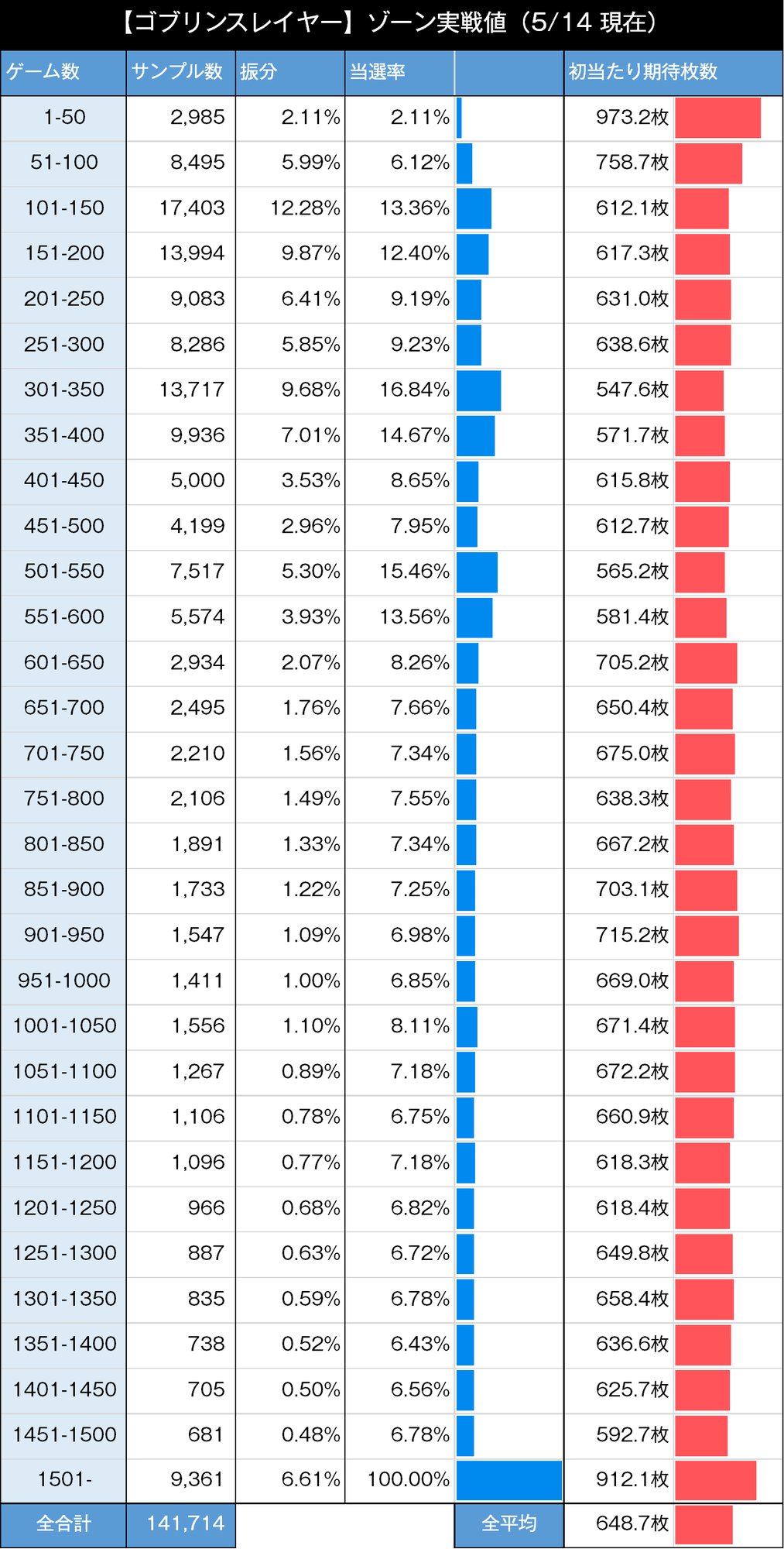 1000枚以上:16.54% (23433/141714)