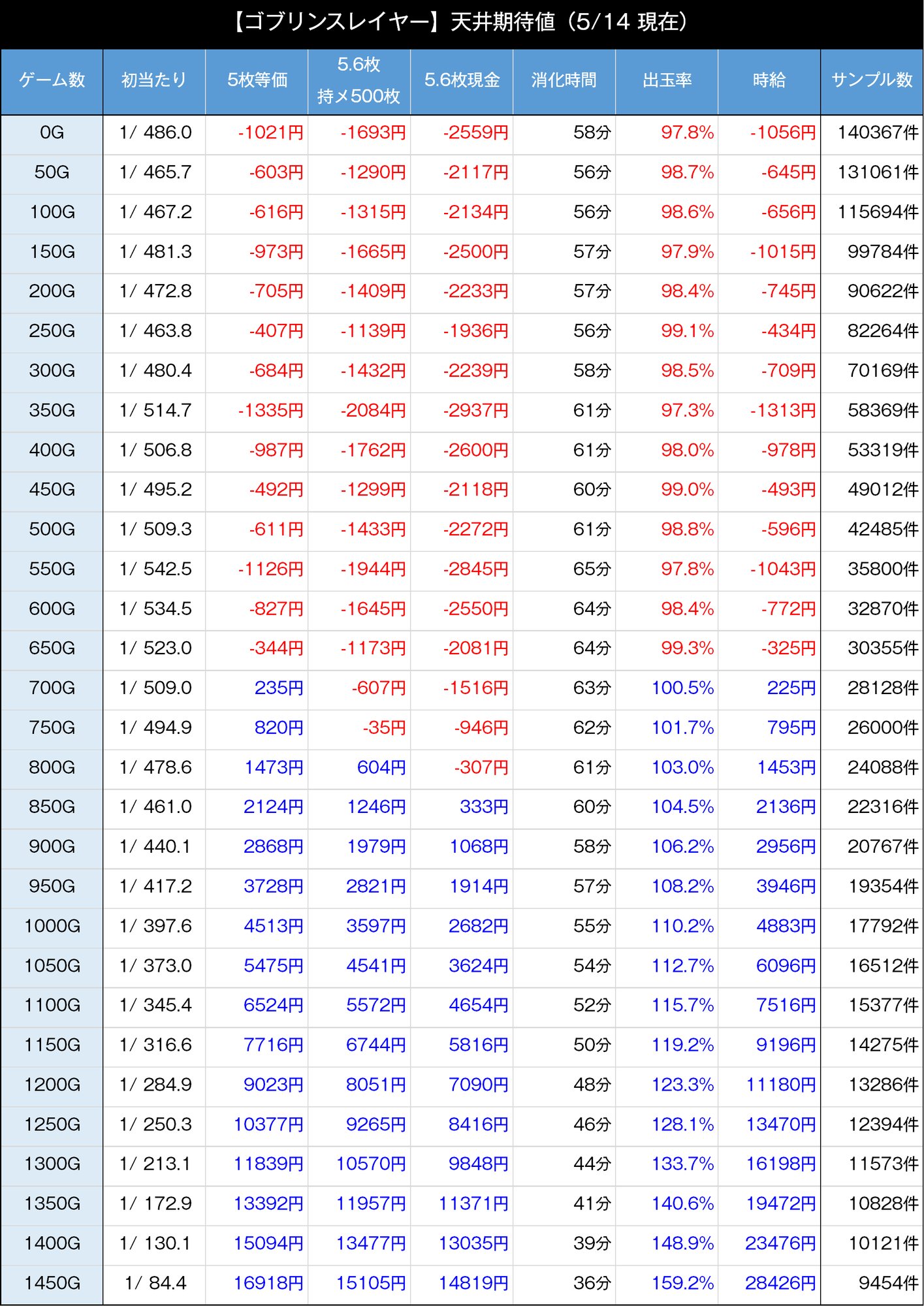 ※ 閉店時間・有利区間状態を非考慮