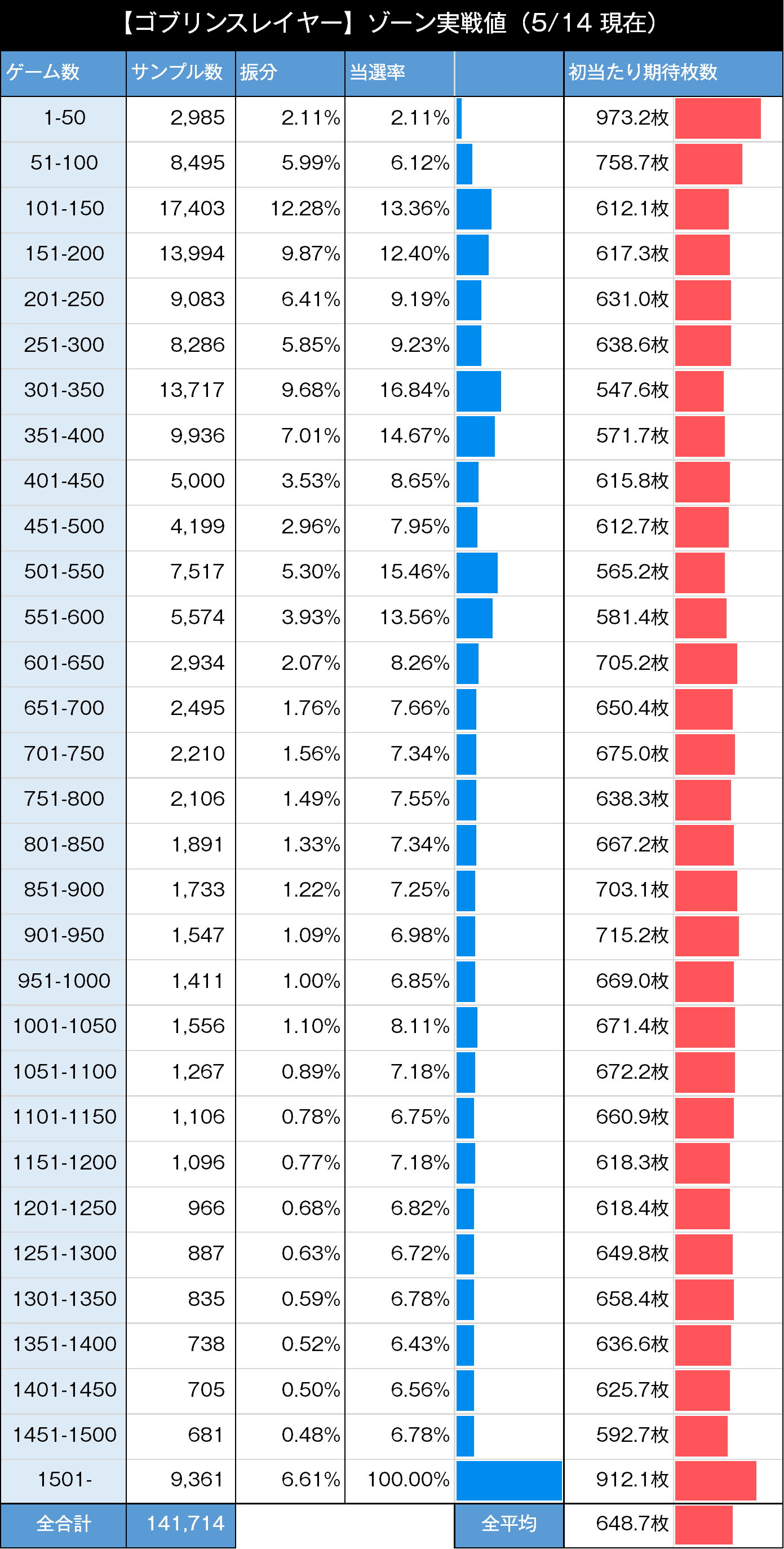 1000枚以上:16.54% (23433/141714)