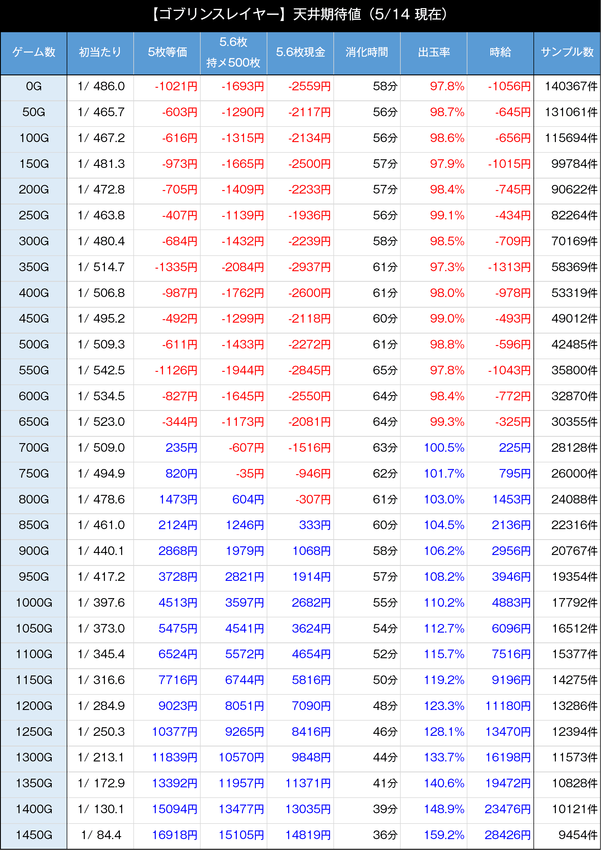 ※ 閉店時間・有利区間状態を非考慮