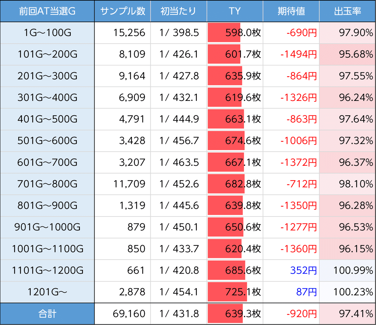 ※ 打ち出し時のAT間ハマりを450G以下に設定