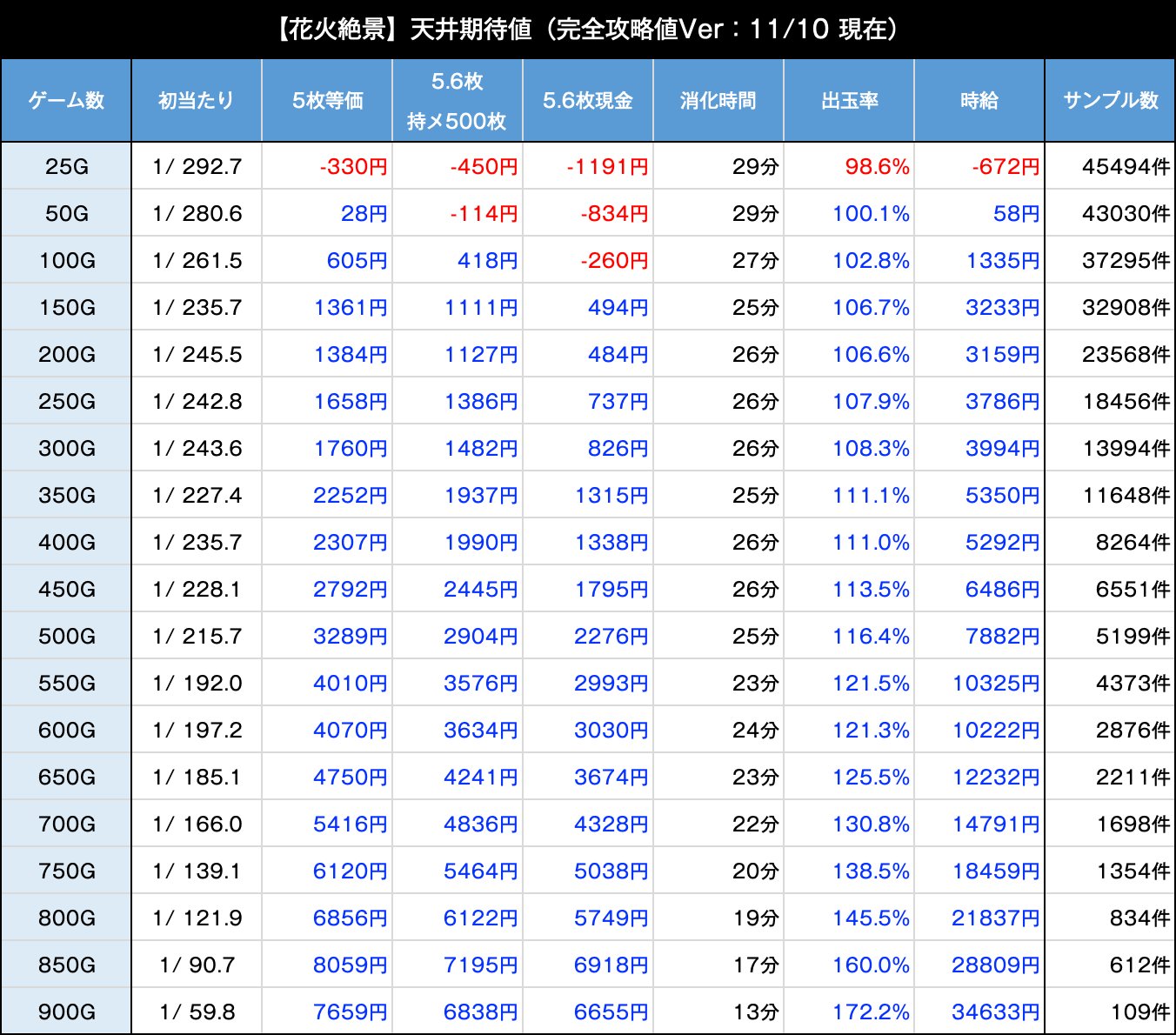 ✅ 10G毎の詳細天井期待値