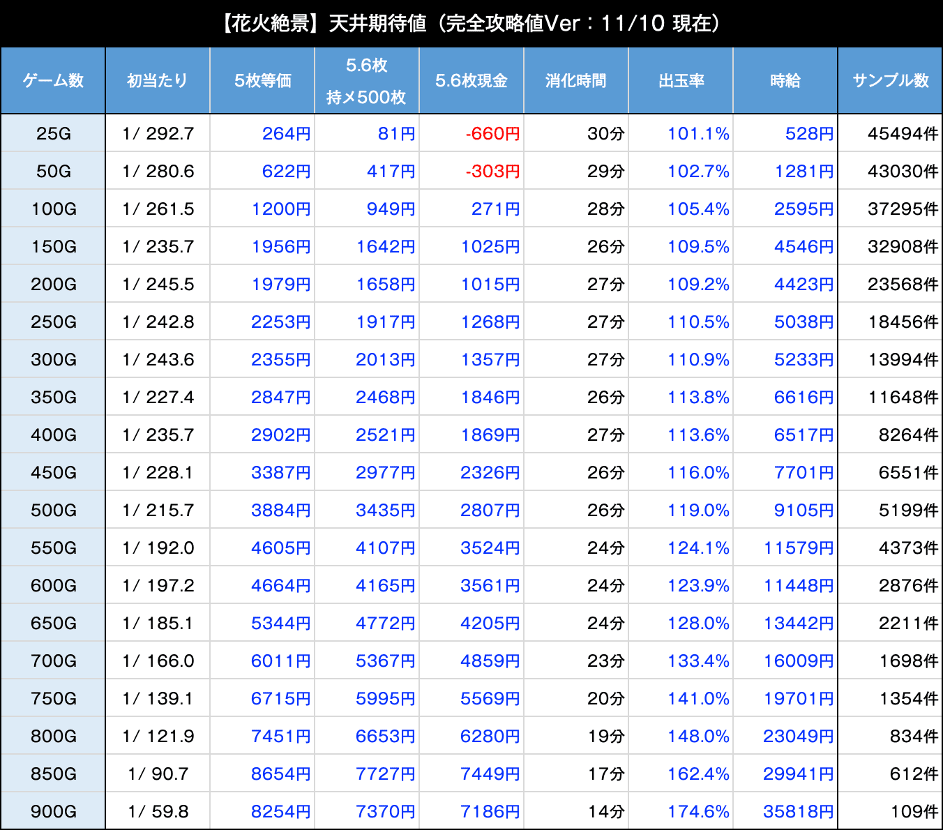 ✅ 10G毎の詳細天井期待値