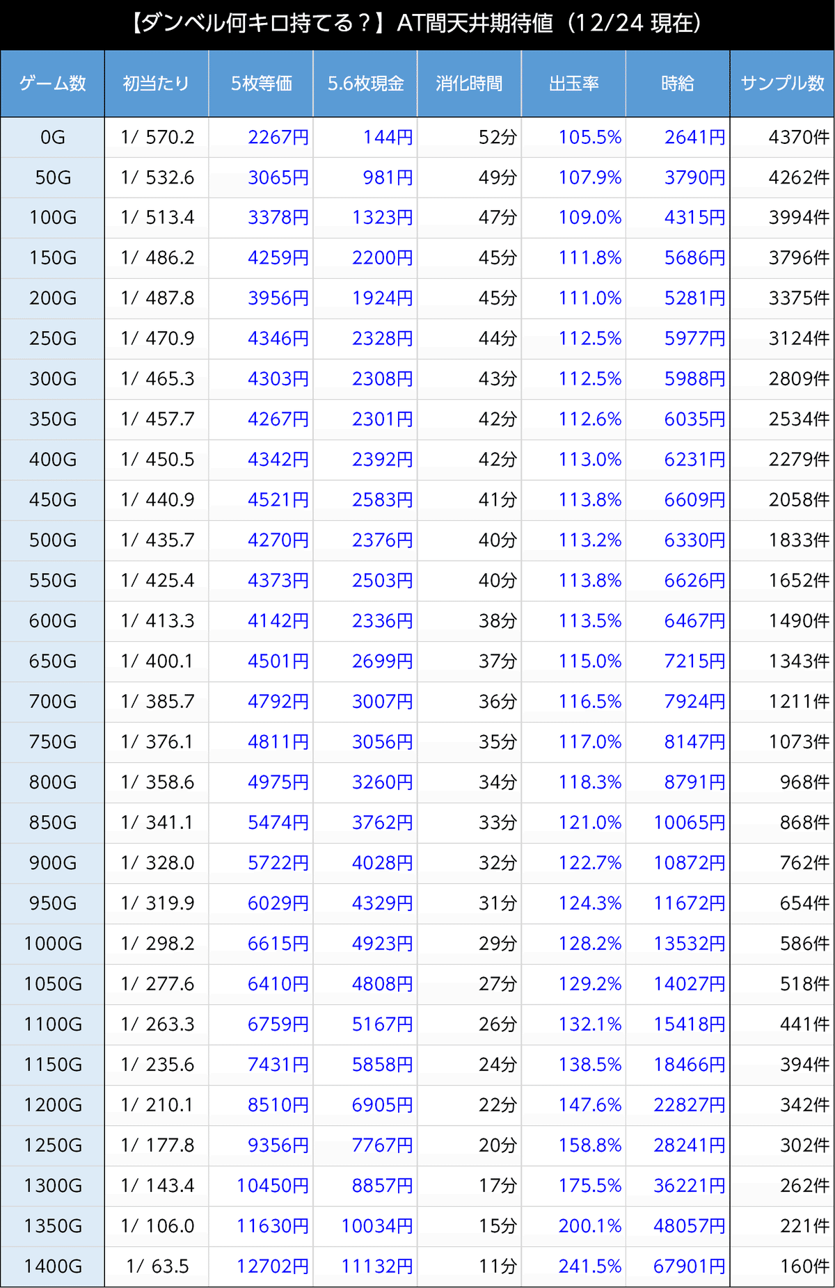 AT間50Gであっても持500枚なら105.4%しかありません。(サンプル4031件)